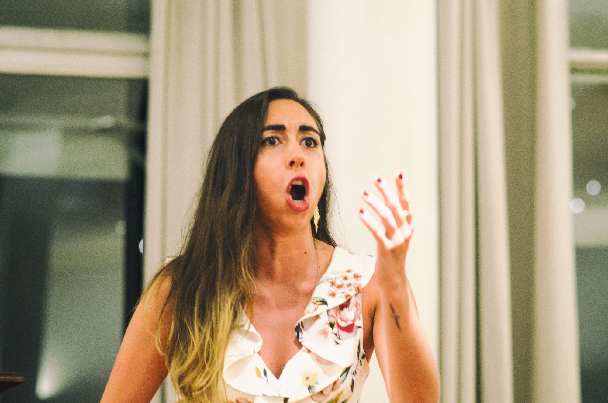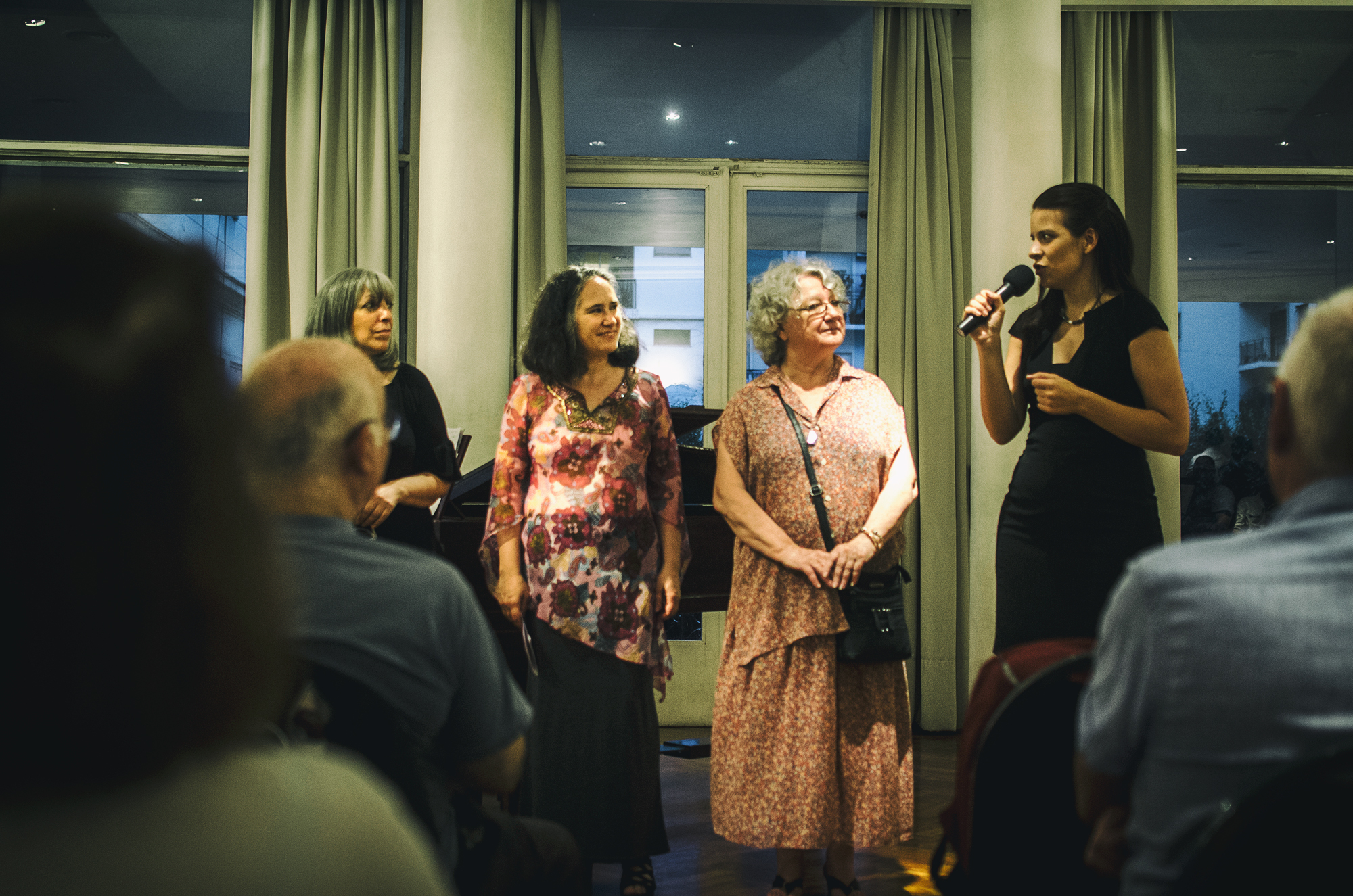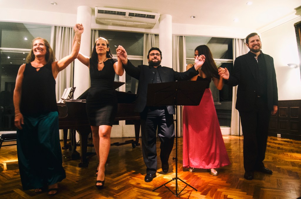 Cinco minutos antes de las ocho de la noche, Mariana Carnovali, directora de Magna Lírica, encendió el micrófono para anunciar el inicio de la velada, junto a sus compañeras Cecilia Layseca -del Ensamble Lírico Orquestal-, Adriana Segal –quien encabeza la Compañía Lírica Verdi– y Marina Arqueros, fundadora del Espacio Victorium, agrupación con sede en Villa Ballester. Hablaron de “defender la lírica independiente, que no tiene subsidio ni sponsors”, y prometieron continuar los discursos luego de la función para dar pie rápidamente al concierto inaugural.