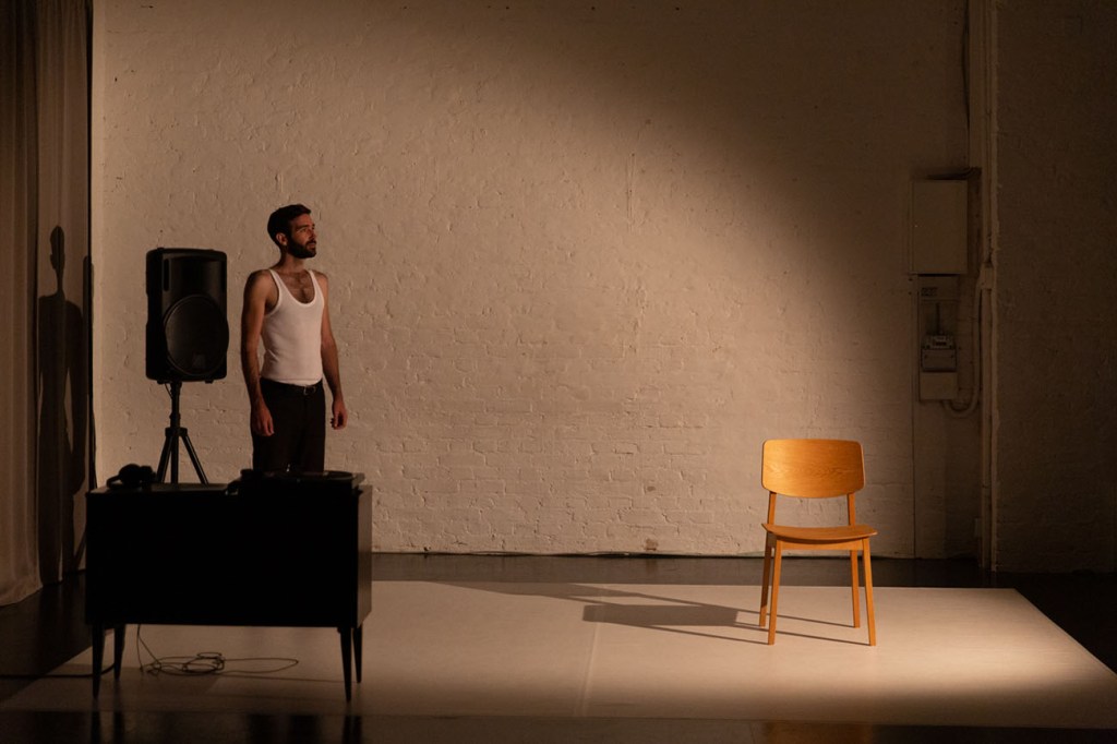 Esta performance, dirigida por Wenzel U. Vöcks, quien desarrolló la idea en conjunto con el tenor e intérprete de la pieza Daniel Arnaldos, se estrenó a comienzos de septiembre en Tatwerk| Performative Forschung, un estudio y espacio de producción ubicado en el multicultural barrio de Neukölln. Durante cuarenta minutos el público asiste a un espectáculo de escucha activa, cuyo centro son el intérprete y la grabación en un disco de vinilo de la primera canción del ciclo Los Siete sonetos de Miguel Ángel, compuesto por el compositor inglés Benjamin Britten para su gran amor, el tenor Peter Pears. El cantante nos invita a acompañarlo en esta escucha activa. Asímismo a lo largo de la pieza el tenor comparte información y datos históricos que rodean esta composición y ayudan a comprender su origen.
